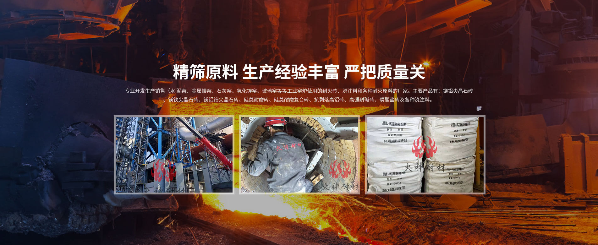 鄭州火神高溫新材料公司(簡稱“鄭州火神”)成立于 2015年,位于河南省新密市。是一家專業開發生產銷售(水 泥窯、金屬鎂窯、石灰窯、氧化鋅窯、玻璃窯等等工業窯爐使用的耐火磚、澆注料和各種耐火原料的廠家。主要產品有:鎂鋁尖晶石磚、鎂鐵尖晶石磚、鎂鋁鋯尖晶石磚、硅莫耐磨磚、硅莫耐磨復合磚、抗剝落高鋁磚、高強耐堿磚、磷酸鹽磚及各種澆注料。